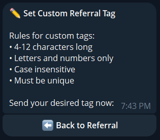 - Quick stats (like referral count) appear directly in the Telegram Bot.