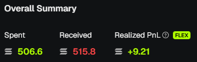 - Received - Total SOL received from sells.