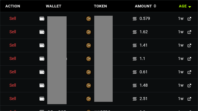 - Amount - SOL (for buys) or tokens (for sells).