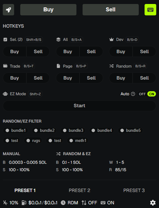 - In Focus mode, hotkey trades and Auto EZ only use wallets in the active preset.