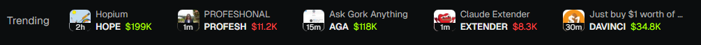 - Scroll the carousel to browse trending tokens.