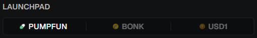- Choose Pump.fun or Bonk.fun. For Bonk.fun, select BONK (SOL-quoted) or USD1 (USD-quoted).